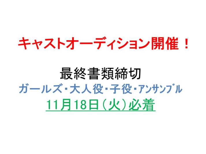 | ~APPLAUSEMUSICALinformation~ 【最新情報】 ◎公式X(@applause_fan)にて情報発信中! 【公演情報ページ 準備中】 郡司行雄プロデュース公演Vol.152 ミュージカル「チャンス☆」2026 製作総指揮・作・演出・振付・脚本:郡司行雄 音楽:玉麻尚一 共同プロデュース:大木香枝 ◆2026年2月5日(木)~8日(日) 中目黒ウッディシアター 2月5日(木)14:00・19:00 2月6日(金)14:00・19:00 2月7日(土)12:30・15:30・18:30 2月8日(日)13:00・17:00 ◆料金 一部指定席(全席プログラム付) 指定席6500円 自由席 6000円 【チケット予約】 ※発売前 ●アプローズチケット 電話予約 03-6712-2373(アプローズ) (販売ページ ●GETTIISオンラインセブンイレブンサービス (販売ページ ※「GETTIIS」(http [QRコード] [アプローズ] [ゲッティ] |